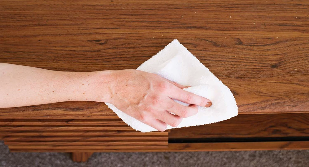 Sirke veya temizleyici kullandıysanız, temiz suyla hafifçe nemlendirilmiş bir bezle yüzeyi bir kez daha silin. Bu adım, kimyasal kalıntıların yüzeyde birikmesini önler.